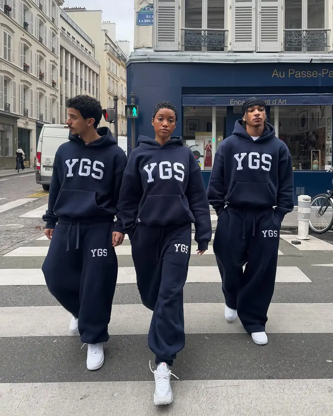 الأمريكية Harajuku نمط الرياضة المتضخم رسالة YGS مطبوعة هوديي دعوى الرجال الشارع الهيب هوب الراب الاتجاه ركض البلوز