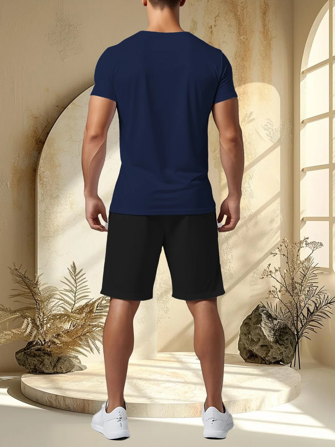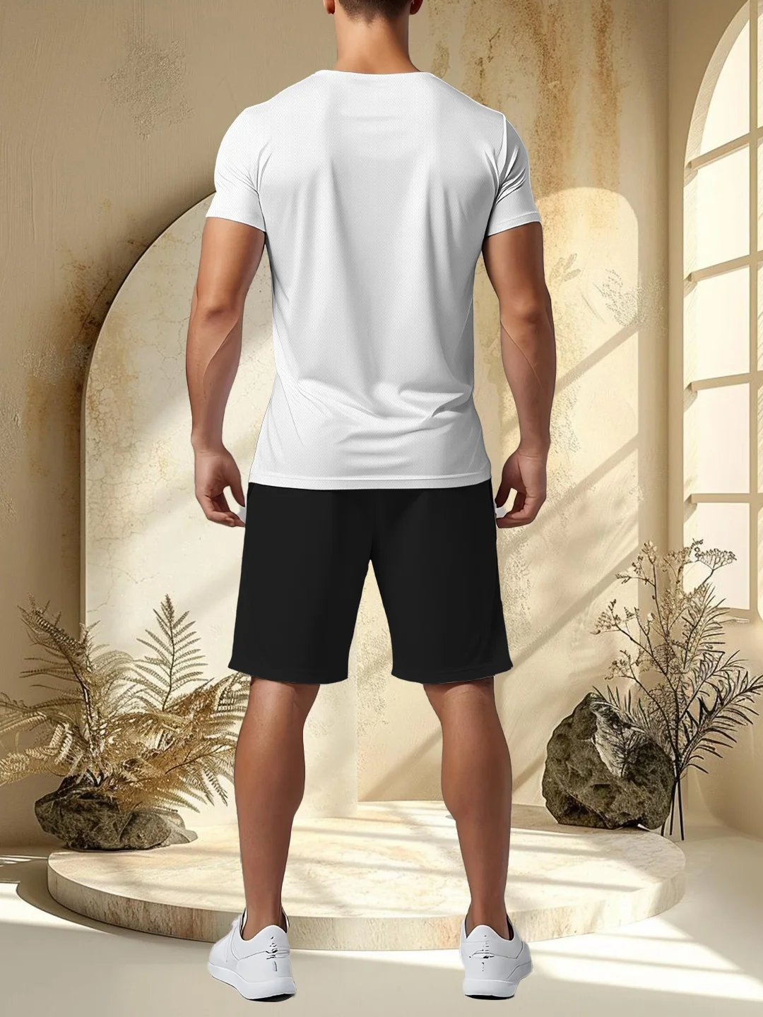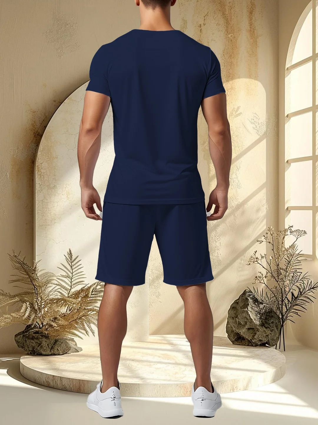 A modern casual suit for men, two modern breathing pieces, T -shirt with a circular neck, short sleeves and Barbat shorts,