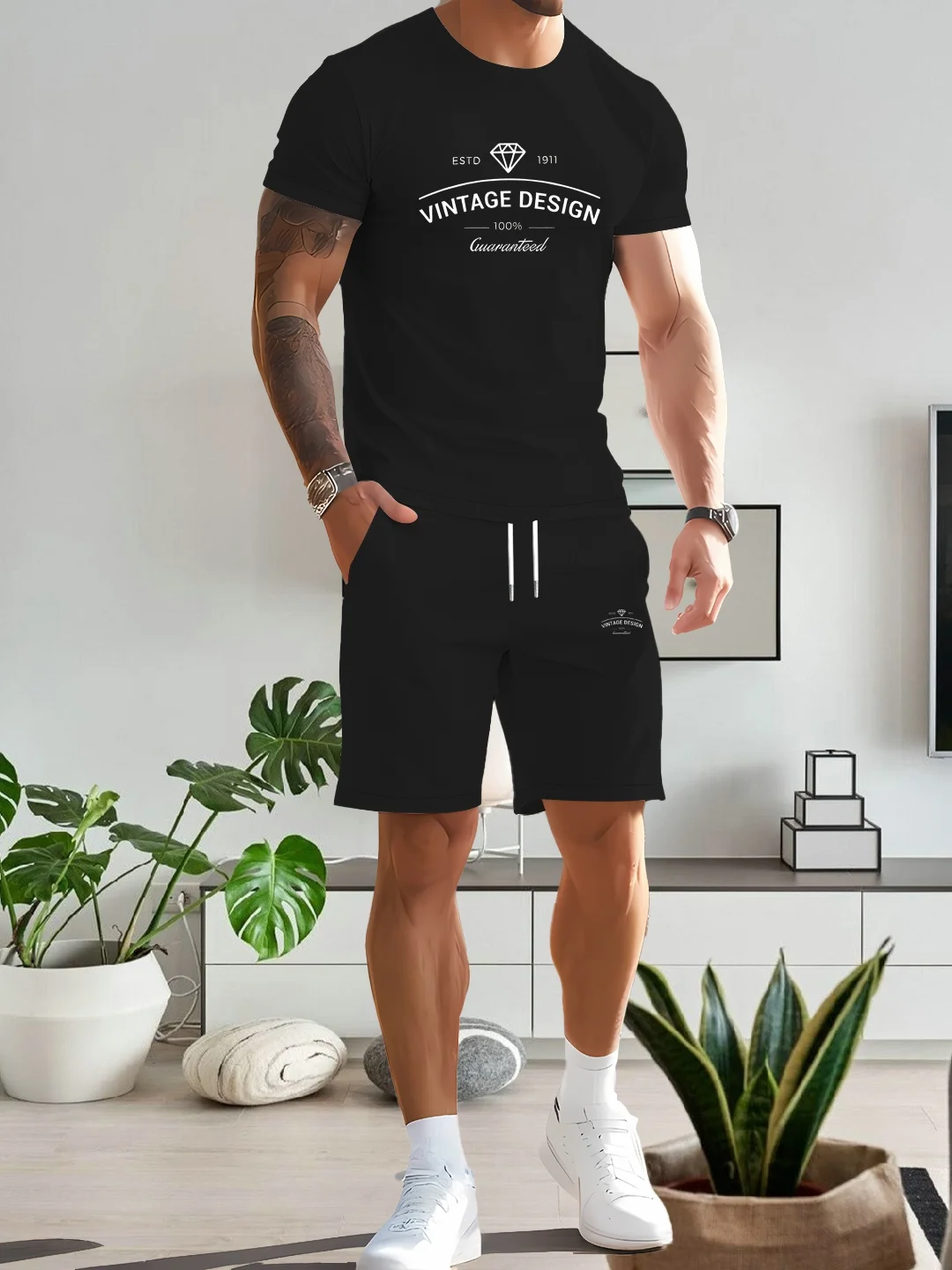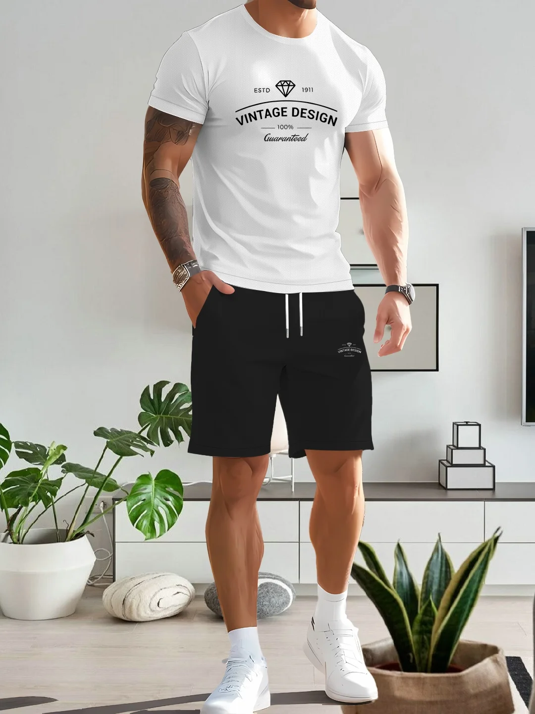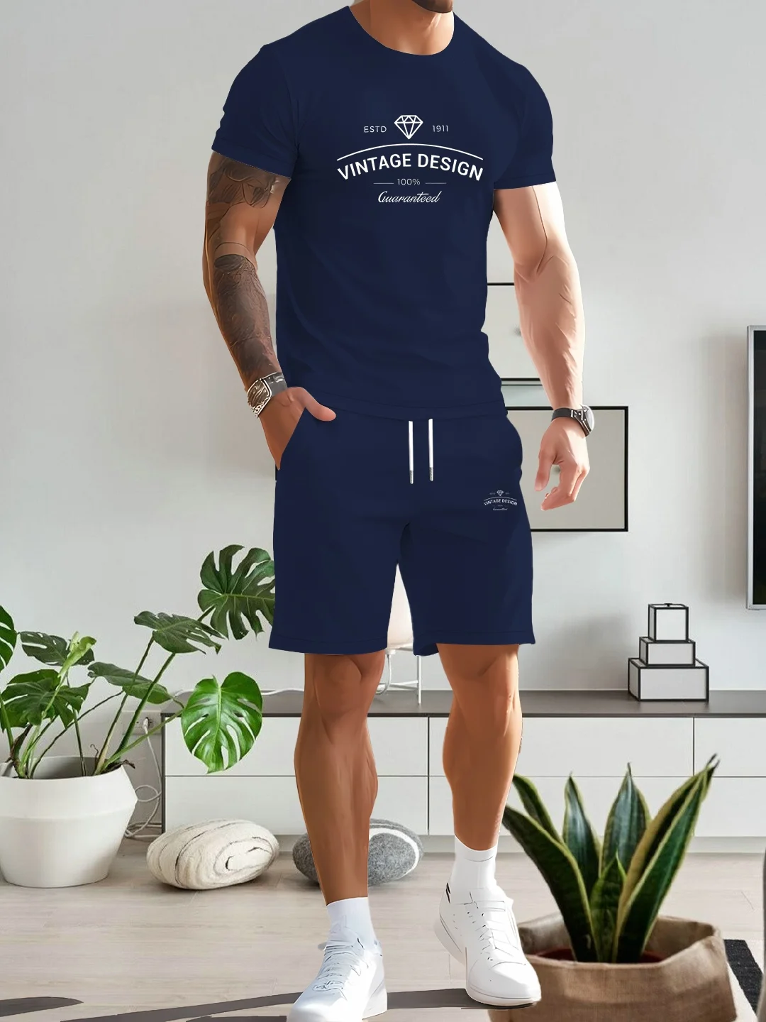 A modern casual suit for men, two modern breathing pieces, T -shirt with a circular neck, short sleeves and Barbat shorts,